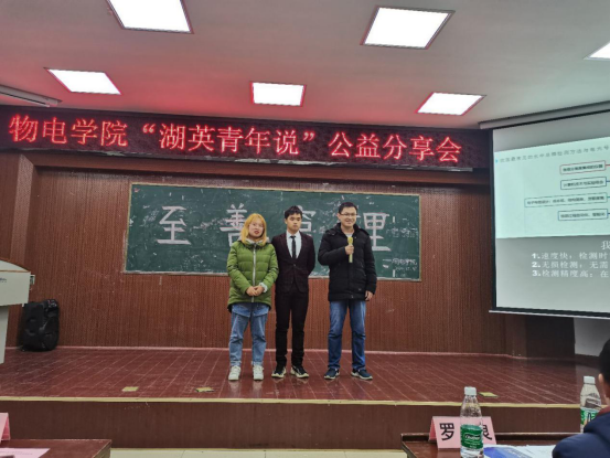 为积极响应学校、学院创新创业教育改革工作的开展,进一步提升学生创新创业能力,搭建更多实践创新平台,12月4日晚,sunbet申搏于6栋学术报告厅举行“湖英青年说”公益分享会,本次分享会由sunbet申搏团委主办,sunbet申搏团委学生分会学科部承办。sunbet申搏副教授罗良、优秀老师徐白、王文进作为评委莅临指导本次分享会。sunbet申搏研究生辅导员许邕子、18级辅导员姚世鹏、学生第二支部书记严胡伟、第十一届团委学生分会副书记胡宏亮、创客协会会长唐泉、校青创代表以及sunbet申搏团学各部门部长作为嘉宾与会,sunbet申搏18、19、20级部分同学到场参加。本次分享会由sunbet申搏学科部部长欧阳仪主持。