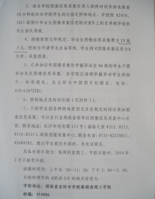毕业生图像信息采集工作通知