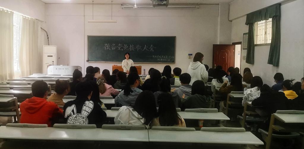为进一步壮大党支部力量,增强党员凝聚力,4月23日中午,sunbet申搏于6103教室召开学生第一党支部预备党员接收大会。sunbet申搏学生第一党支部书记何小娅出席并主持会议,支部全体党员和拟接收为预备党员的发展对象参加。