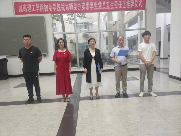 7月1日下午4:30,物理与电子科学学院在六栋教学楼大厅举行学生党员卫生责任区挂牌仪式暨教学楼环境清理活动,以实际行动向伟大的中国共产党成立100周年献礼。党委书记周畅、副书记张陈武、学生第一党支部书记何小娅、学生第二党支部书记严胡伟及18级辅导员姚世鹏出席仪式,sunbet申搏全体学生党员参与。张陈武主持。