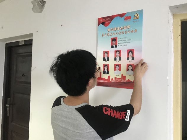 首先,学生第一党支部书记何小娅宣读六栋学生党员卫生责任区区域划分、人员安排以及相关责任要求,随后向各责任人颁发了区域公示牌。