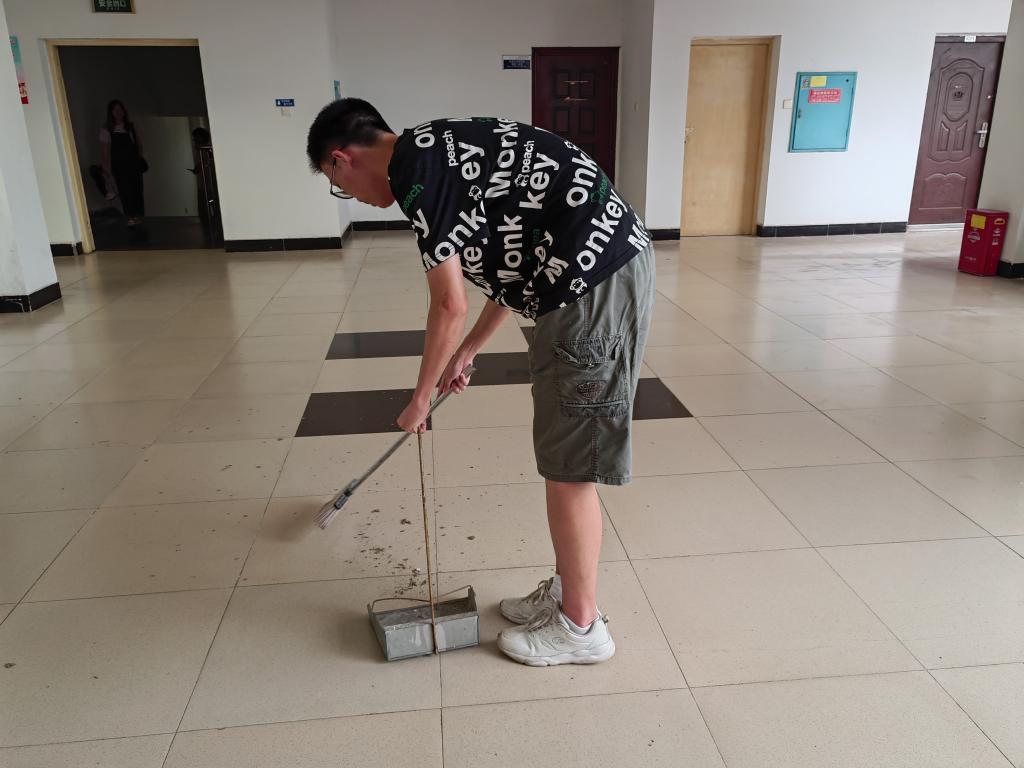 仪式结束后,各小组责任人在相应区域挂上了责任区公示牌,全体学生党员根据区域划分以小组的形式对整栋教学楼公共区间进行了清扫工作,楼道环境焕然一新。
