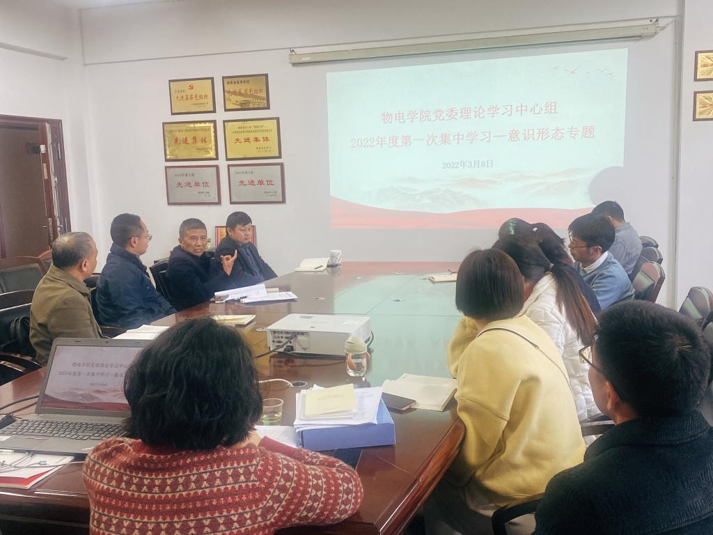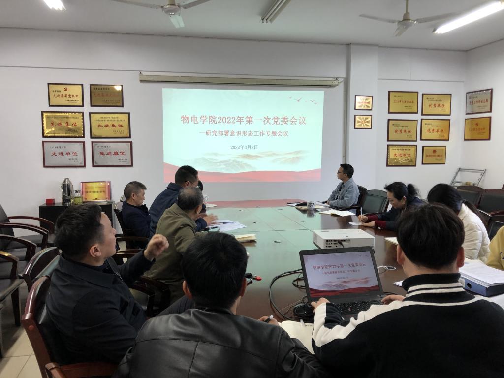 3月9日,sunbet申搏党委理论学习中心组召开2022年度第一次集中学习意识形态专题暨研究部署意识形态工作专题会议,sunbet申搏党委班子成员、党代表、党员代表参加,党委书记周畅主持。