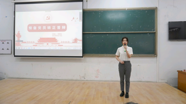 预备党员依次上台答辩。答辩人首先进行5分钟预备期情况汇报,主要从政治思想、理论学习、参加组织活动、存在不足及改进措施等方面,陈述结束后,由在场的老师、党员、积极分子提问,答辩人回答关于党史、党章、习近平新时代中国特色社会主义思想、十九届六中全会等党的理论相关问题,现场设置了评价环节,借助小程序,设优秀、良好、合格、不合格四个等级,与会人根据答辩人表现进行客观评价。