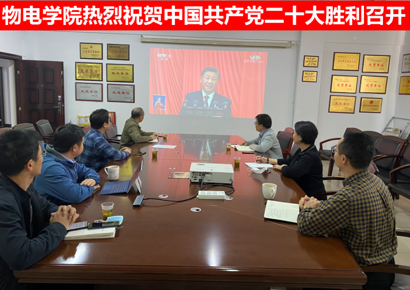 物电学子密切关注党的二十大召开,他们或在教室,或在宿舍集中收看,或组织腾讯会议线上收看开幕会。他们手持党旗,热烈祝贺党的二十大召开。同学们认真聆听习近平总书记的报告,深感作为新时代青年,生正逢时,使命重大,要努力学习,报效祖国!