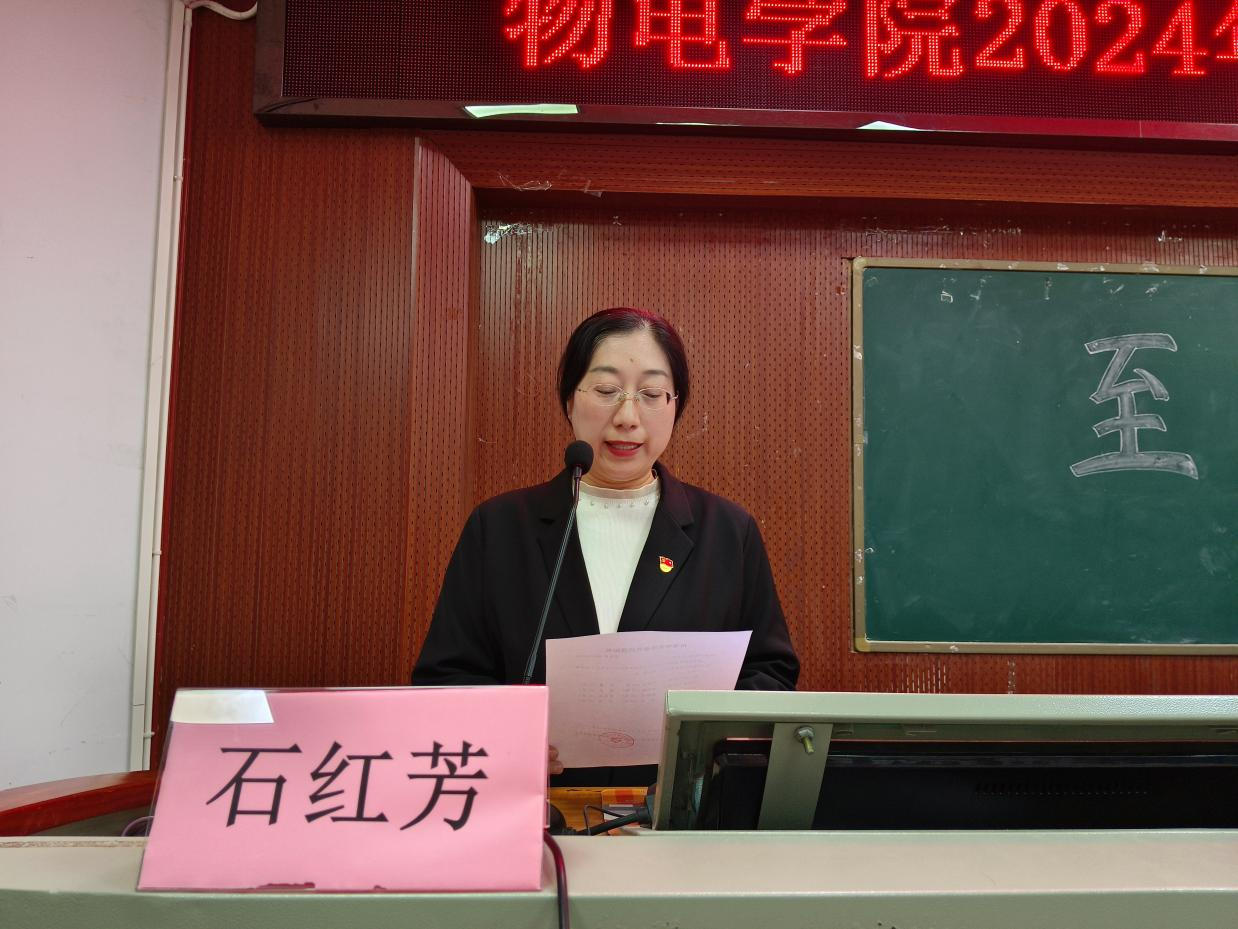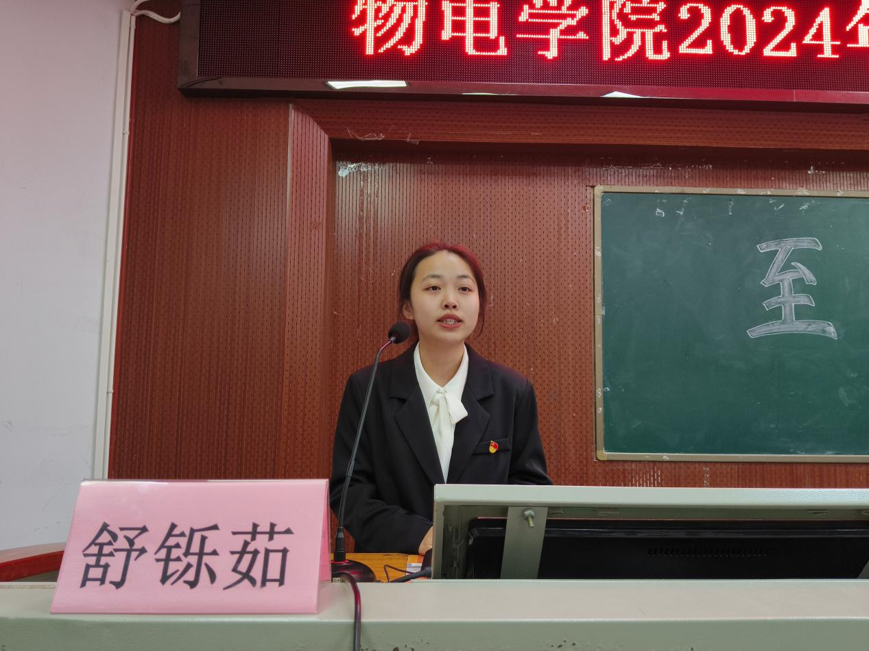 新党员代表舒铄茹分享了向党组织靠拢的成长历程,表示将不辜负党组织的期望,积极进取,在实践中发挥共产党员的先锋模范作用。