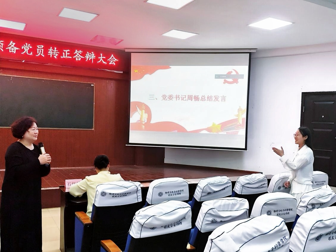 5月11日,我院召开预备党员转正答辩会,院党委书记周畅、副书记石红芳担任评委,全体学生党员入党积极分子参会。