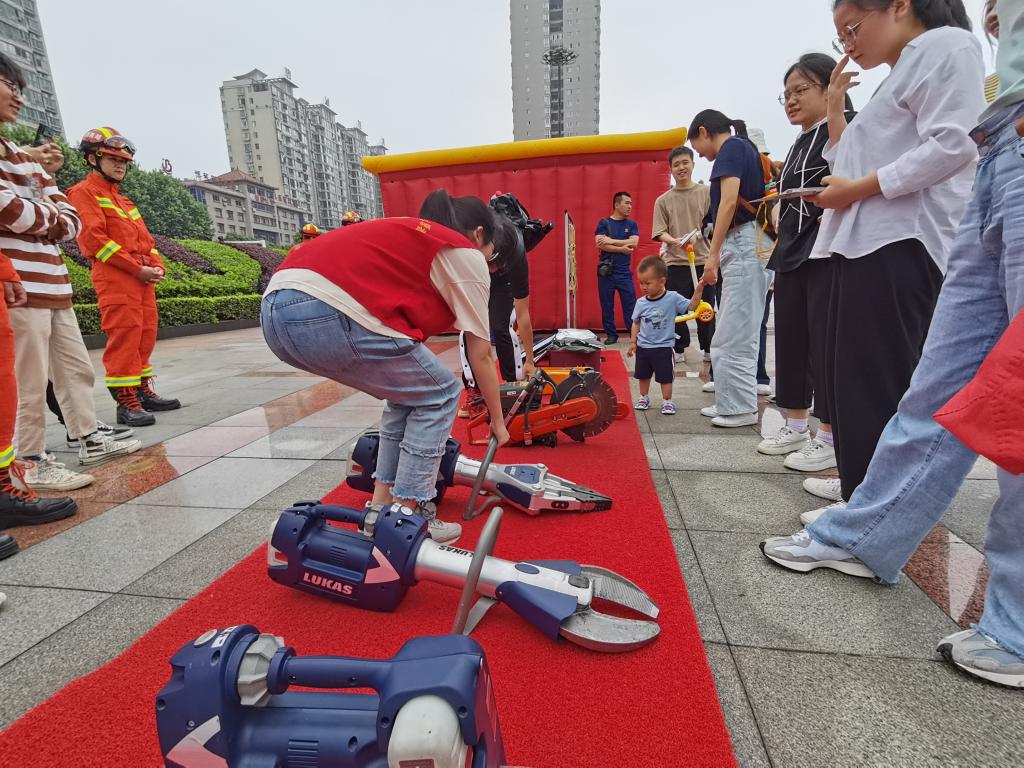 完成传单发放任务后,志愿者们在岳阳市减灾委员会的组织下开展了疏散逃生体验。随后,岳阳市消防局向大家进行了简单的消防器材使用演示。志愿者们热情满满地加入到消防器材的实操演示中。这些活动以新颖的方式有效地提升了大家的安全意识和自救能力。