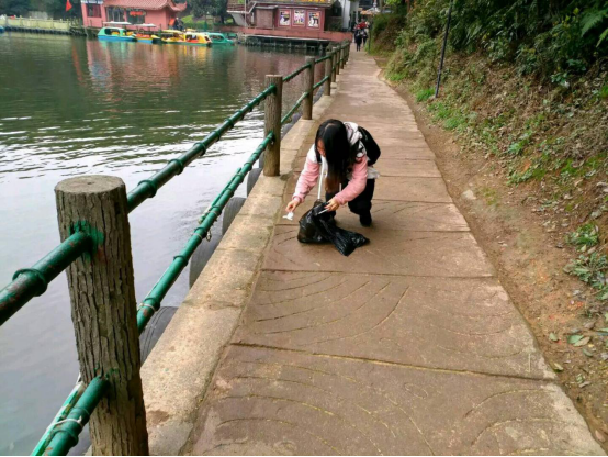 九点五十,志愿者们到达了金鹗山公园。志愿者们在文昌阁、玉佛寺、樱花园等地方清理垃圾,保护环境,并且对一部分乱扔垃圾的行为进行劝阻。尽管雨后的路面较滑,天气较凉,但是他们无所畏惧,不怕脏,不怕累,用自己的行动维护了公园的美丽,为游客创造美丽舒适的环境。大家用自己的行动宣传了爱护环境的理念,让环保成为一种习惯,从身边的一点一滴做起。志愿者们不仅奉献了爱心,又欣赏了公园的美景,一路上欢声笑语。很快就到了十一点,公园被清理了一遍,志愿者们在门口集合拍照留念,乘坐公交车平安的回到了学校。