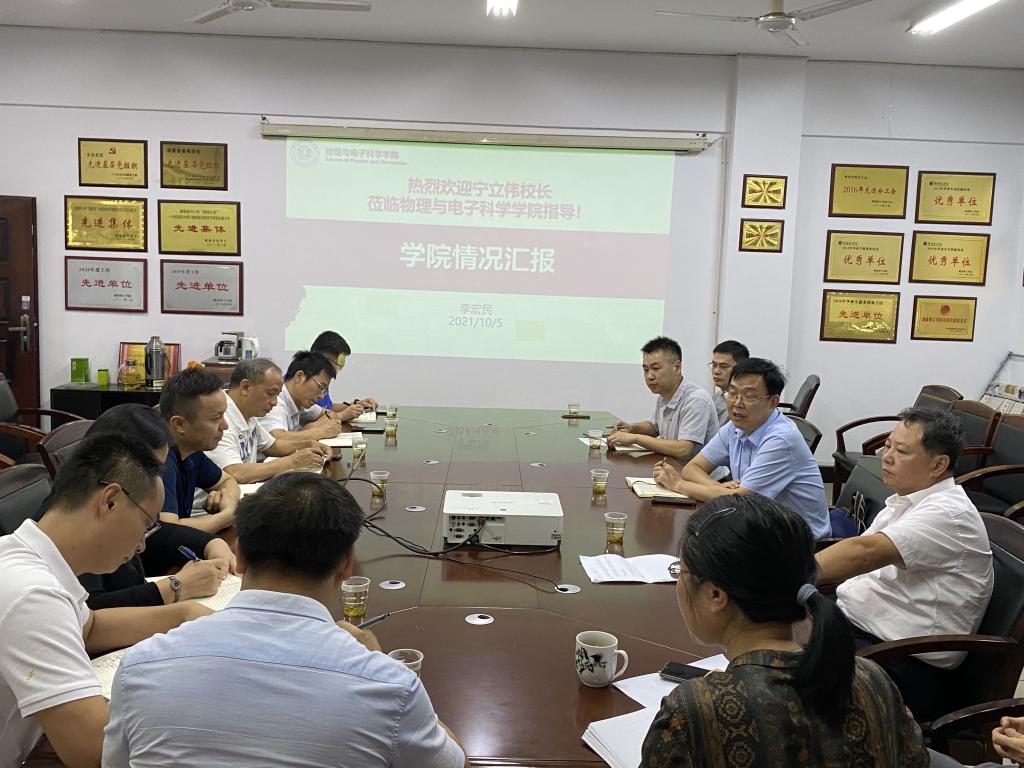 首先,sunbet申搏院长李宏民从师资队伍、教学建设与改革、人才培养、科学研究、学科建设与研究生培养、学院十四五发展规划及财务使用和公开等方面进行了简要介绍,汇报了学院近三年来取得的成绩,重点提出了在电子类专业教师队伍建设中的困难,以及要承担全校2000多名理工科学生《大学物理》与《大学物理实验》公共课,共享实验室建设的问题和困难,提出了经费使用的建议。在座的其他人员围绕调研内容发言,反映教学条件、学校管理、实习就业等情况,提出意见和建议,希望得到学校的支持和指导。