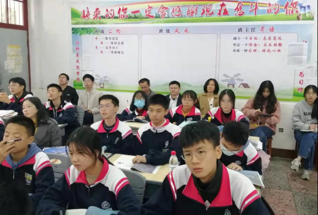 魏勇一行在云梦中学听实习生上课