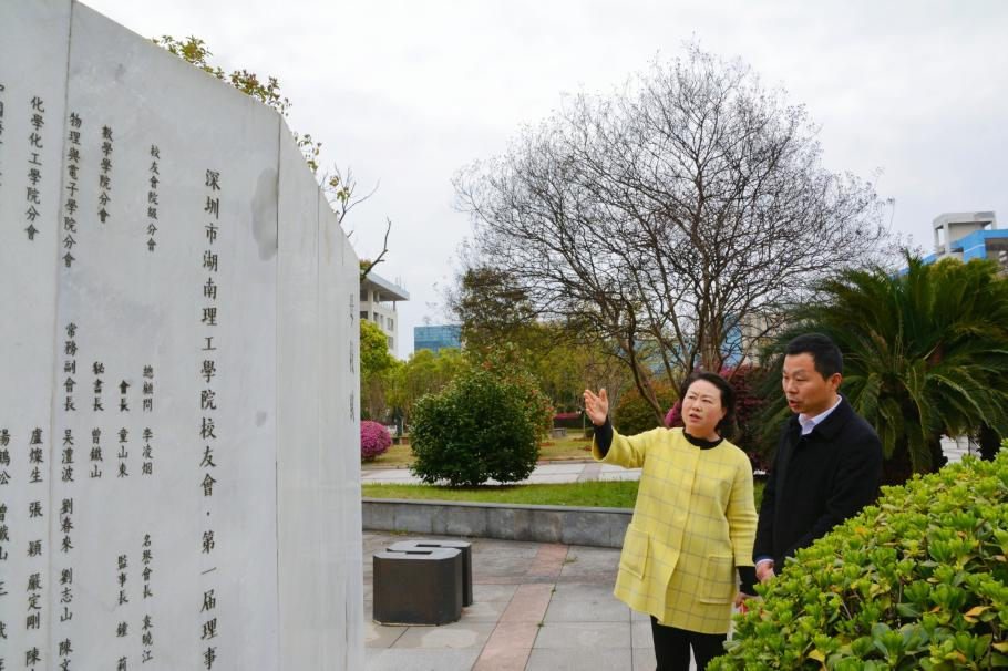 周畅为昌乐介绍深圳校友捐赠的《校友赋》石碑