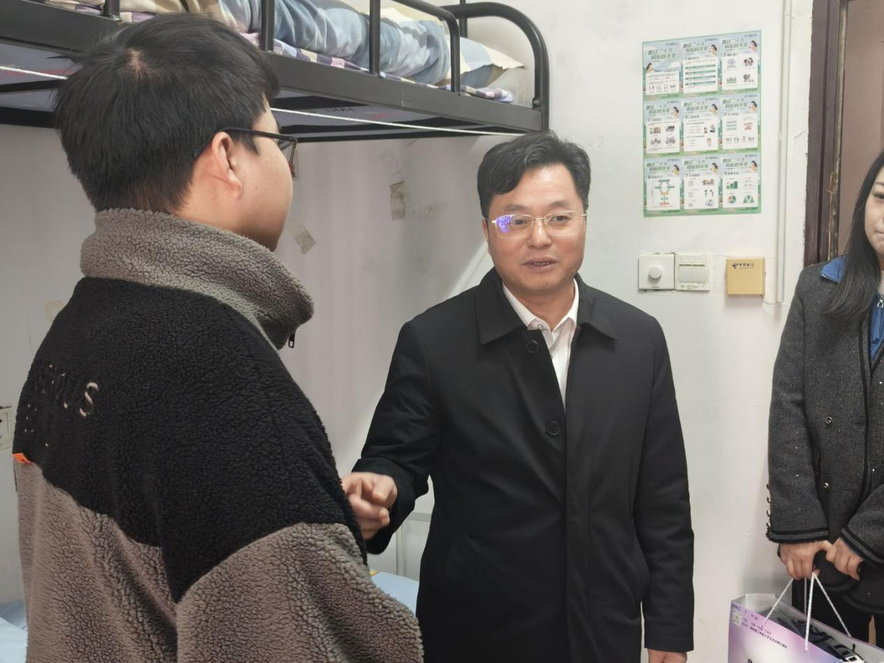 12月30日下午,副校长汤小红带队,校团委副书记彭璐、sunbet申搏党委书记周畅、副书记石红芳及辅导员刘莹一行前往学生宿舍慰问学生。