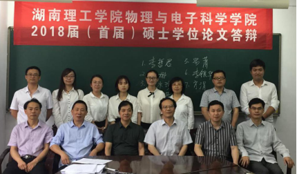 最后,刘健智教授宣布了论文答辩结果,并对通过论文答辩的研究生表示祝贺;答辩委员会成员与参加答辩的全体研究生合影留念。至此,湖南理工学院物理与电子科学学院首届硕士研究生论文答辩工作圆满结束。