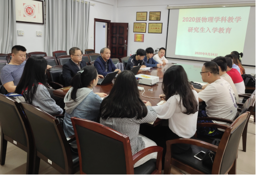 2020年9月24日,湖南理工学院2020级学科教学(物理)专业硕士研究生入学教育在物理与电子科学学院会议室举行,出席入学教育的人员包括15位研究生新生、副院长李科敏教授、导师组成员李奇云老师、研究生秘书郭苏丽老师、研究生辅导员许邕子老师等。