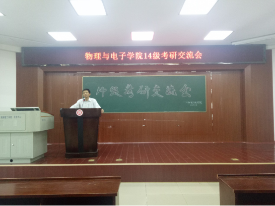 为了激发2018届学生的学习热情和考研激情,增强同学们的考研信心。5月5日下午3点,在物电楼学术报告厅举办了14级考研交流会。sunbet申搏院长李宏民、党总支书记罗文华、4位13级考研成功的学生、14级学生代表刘妍及14级全体学生参加了此次交流会。