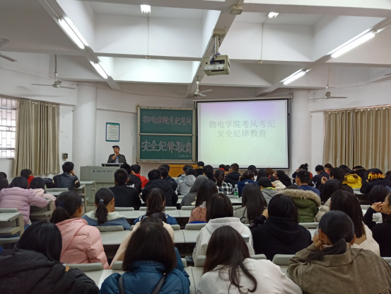 首先,张书记对学院的学风考风进行分析与评价,指出学院学风上存在着严重的“两极分化”,告诫同学们不能放松,要以积极进取、全力以赴的状态迎接之后的挑战;同时提出对大家的要求:不旷课、不迟到、认真听讲、高效复习,争取在期末考出好成绩。接着,张书记对安全问题进行强调,告诉大家要有防火意识,表示学院会对违规电器严查到底;同时注意校内校外交通安全,对网贷与兼职问题,告诫大家不能盲目、考虑周到、认清自身。最后,张书记希望同学们能走好自己大学的第一步,保持积极进取的心态,保障自己的安全。