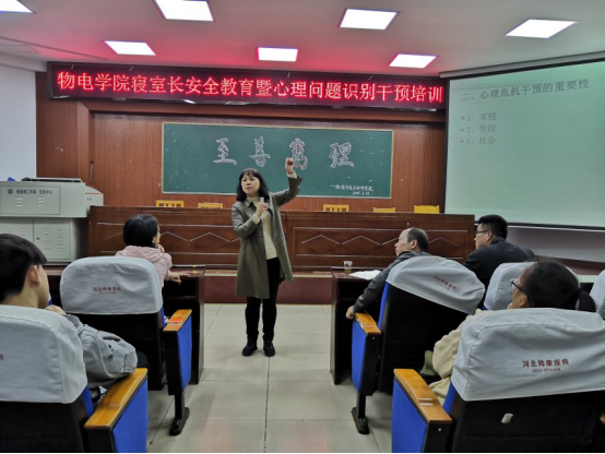 最后,张书记对本次培训做出小结,指出寝室长要有相关意识并能够去知道身边哪些人需要关心,能够第一时间去干预,最快反馈到老师那,让老师明白哪些人群需要关心,哪些时间段可进行全面分析,掌握这方面的知识并祝同学们大学四年愉快度过。