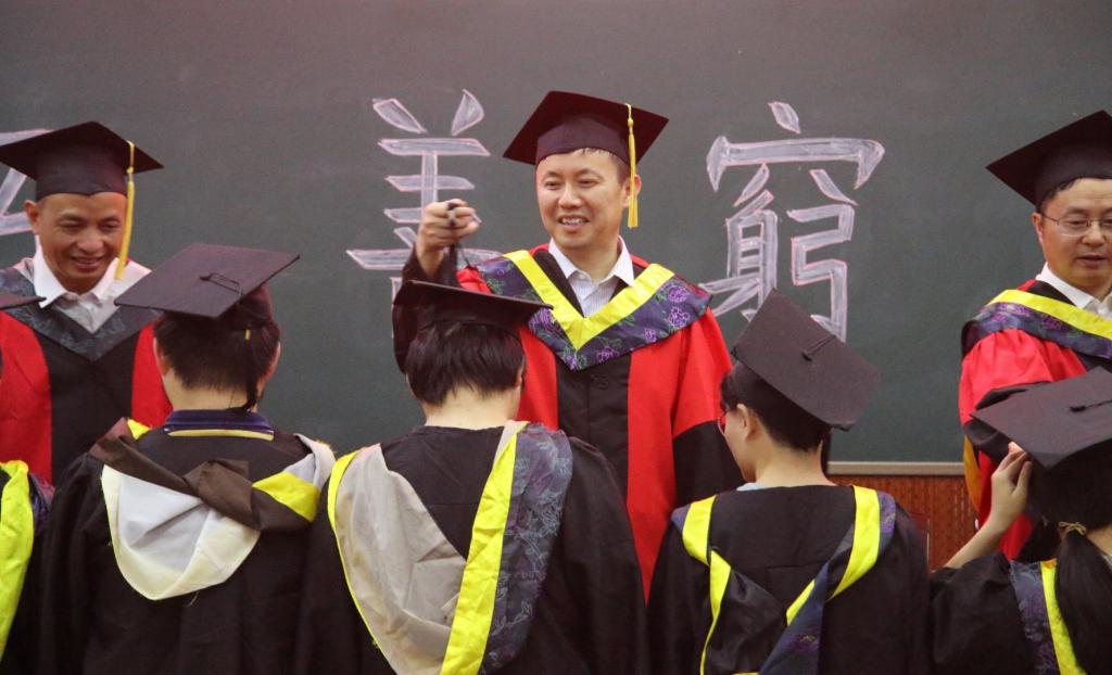 激昂的校歌响起,毕业生们有序走上主席台,主席台导师一一为学生拨苏正冠、授予学位,并与毕业生合影留念。