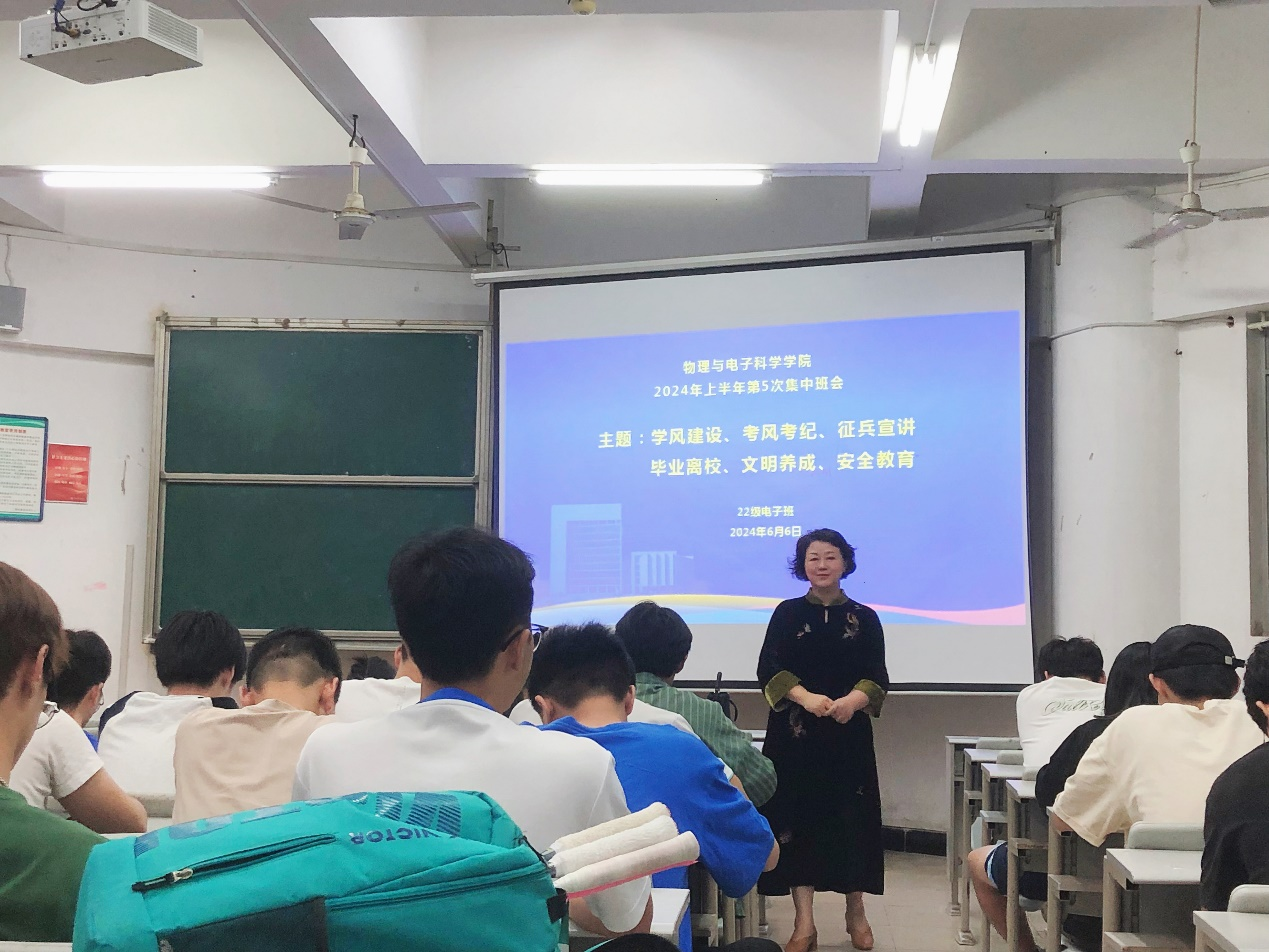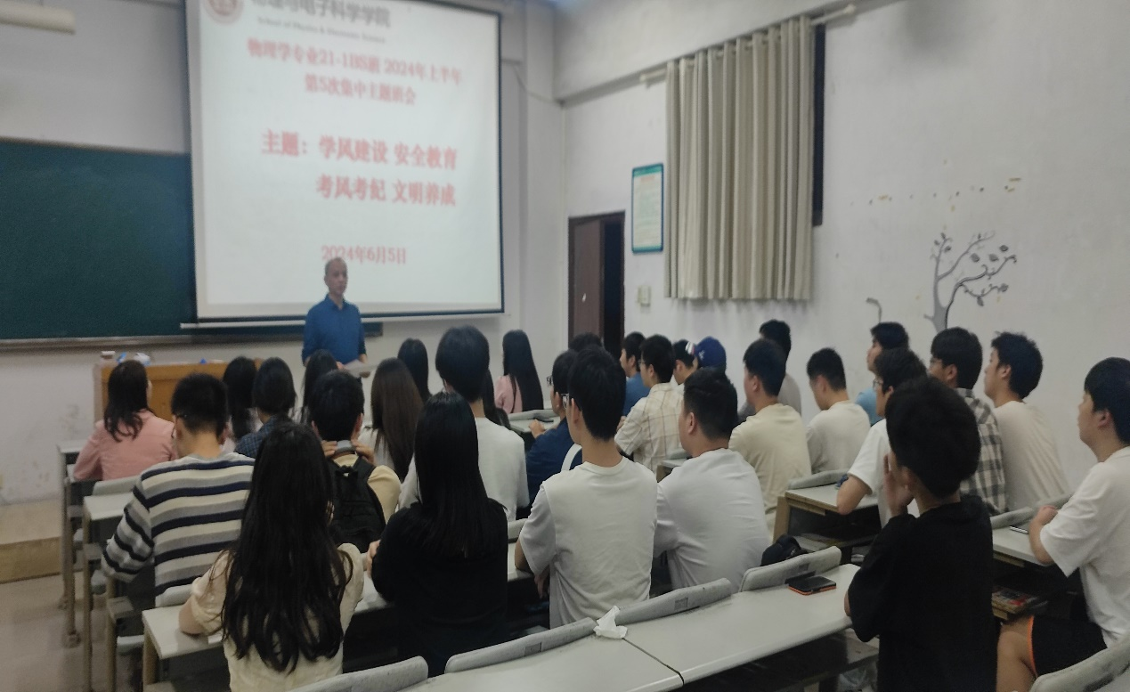 为加强学生日常管理,提高学生安全防范意识,严肃考风考纪。近日,sunbet申搏召开2024年上学期第五次主题班会,班会由各班班主任主持,全体同学参加。