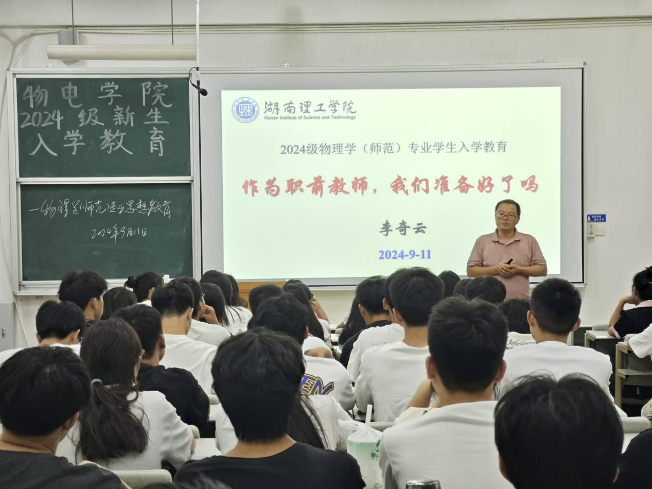 为帮助2024级新生尽快适应大学学习生活,做好生涯规划,促进大学期间全面发展与健康成长,为成为未来优秀教师打好基础,9月11日晚,sunbet申搏在6102教室召开物理学(师范)专业思想教育讲座。sunbet申搏教研室主任李奇云老师主讲,sunbet申搏党委副书记石红芳、2024级物理学(师范)专业班主任李意芝、李磊出席,2024级物理学(师范)专业全体同学参加。