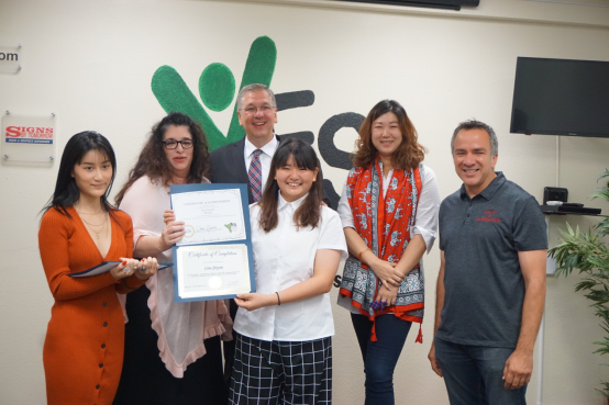 白色衬衫,浅蓝色牛仔裤,头发微卷,脸上总挂着笑容,看似平凡的她却是湖南理工学院全校唯一一个争取到了2018湘创菁英美国培养计划名额的同学,并且在成功入选后收到美国加州茉莉塔市政府、YES college、亚美教育、美国加州大学洛杉矶分校(UCLA)四所机构的邀请函。面对这样一个来之不易的机会,廖金艳爽朗一笑:“很感恩自己大学两年来的不断努力和辛苦付出,我始终相信,机会只留给有准备的人。
