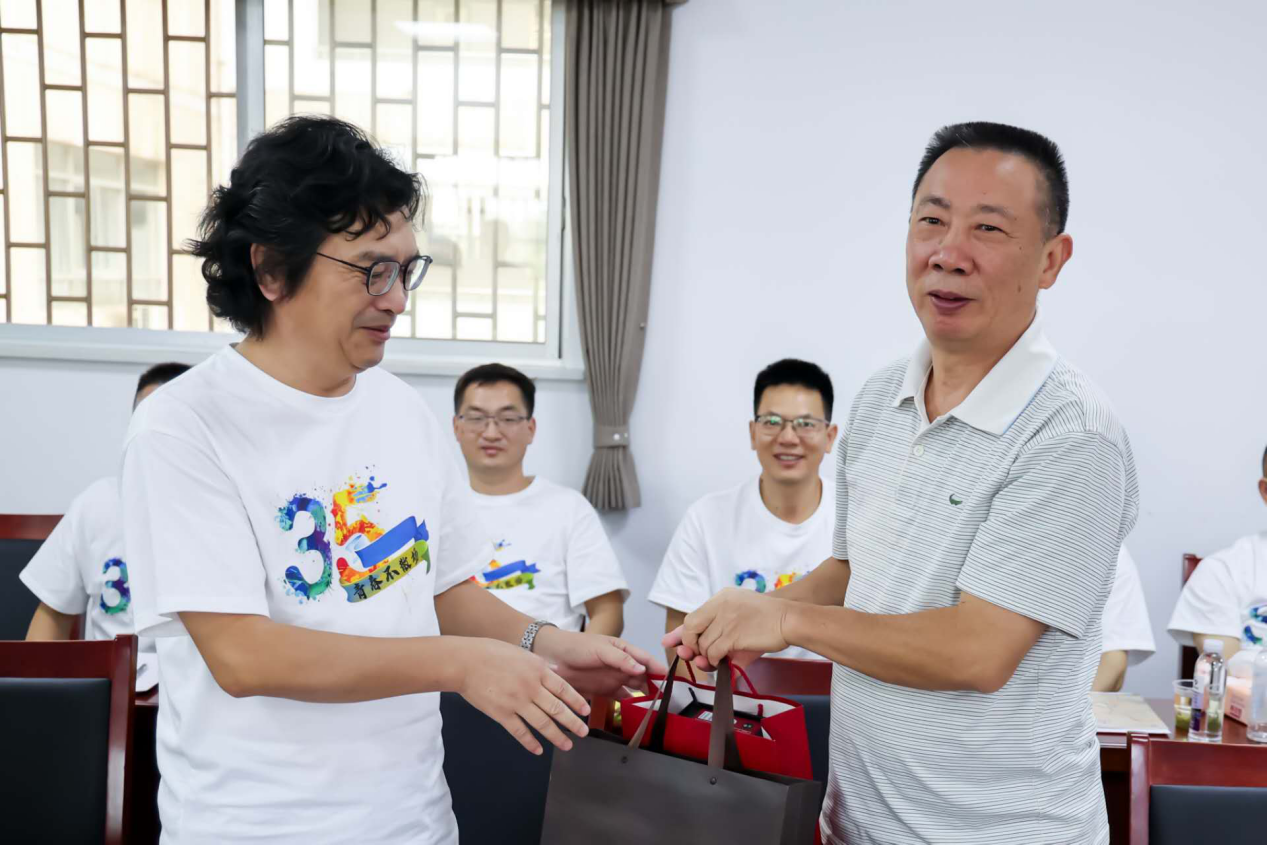 周畅转达学校校友会秘书长陈超文对校友回母校的欢迎,给校友赠送校友杂志《在湖理》,介绍了sunbet申搏校友分会基本情况,希望校友关注母校,常回母校看看。